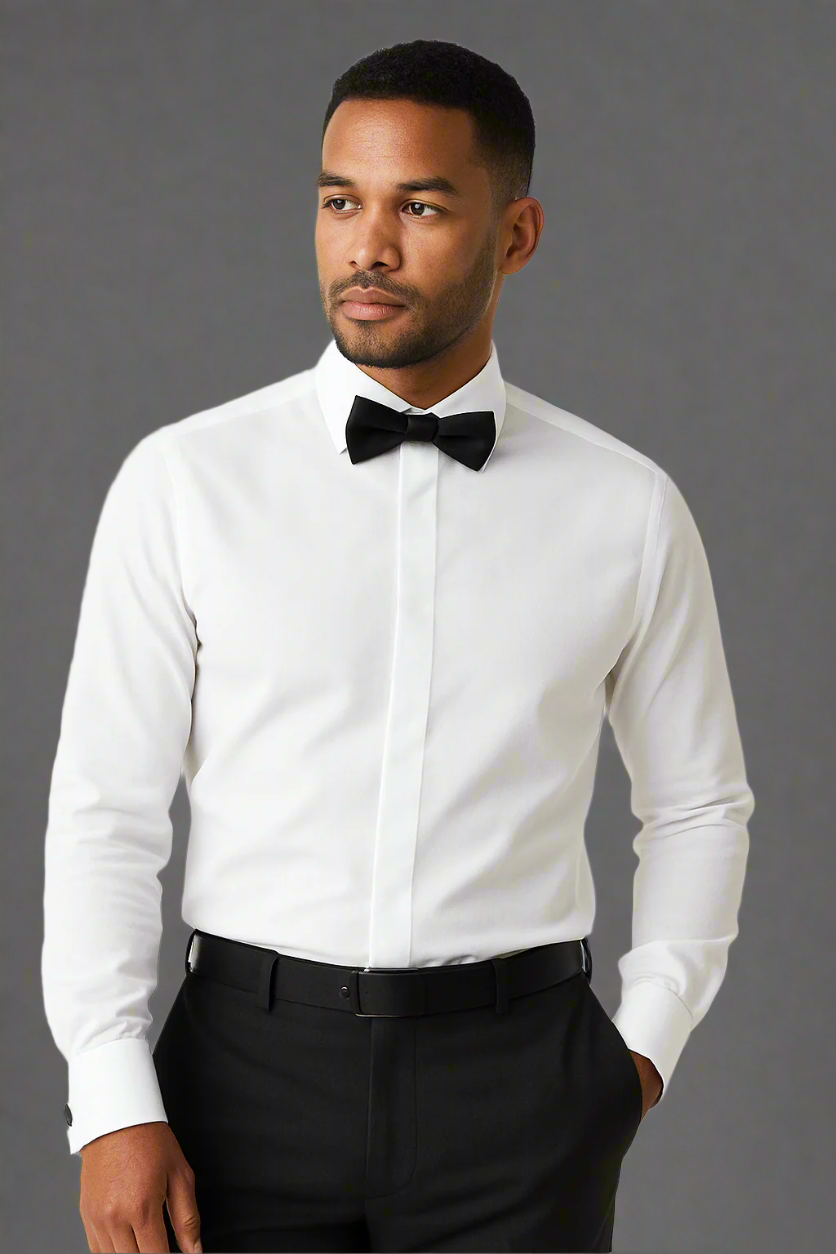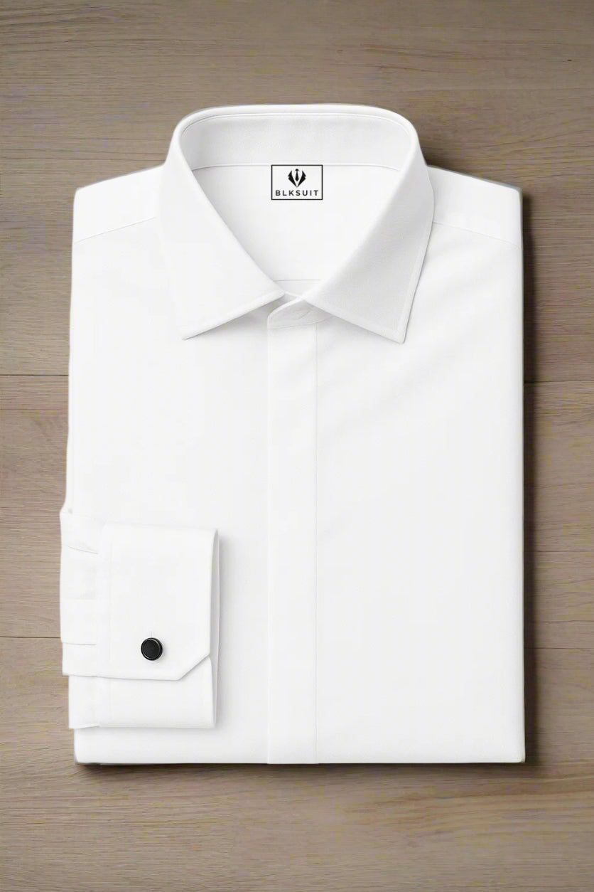 Manchmal ist weniger mehr. Darum haben wir dieses weiße Hemd mit verdeckter Knopfleiste designt. Perfekt für jeden abendlichen Anlass und bekommt sicher Blicke der Bewunderung.